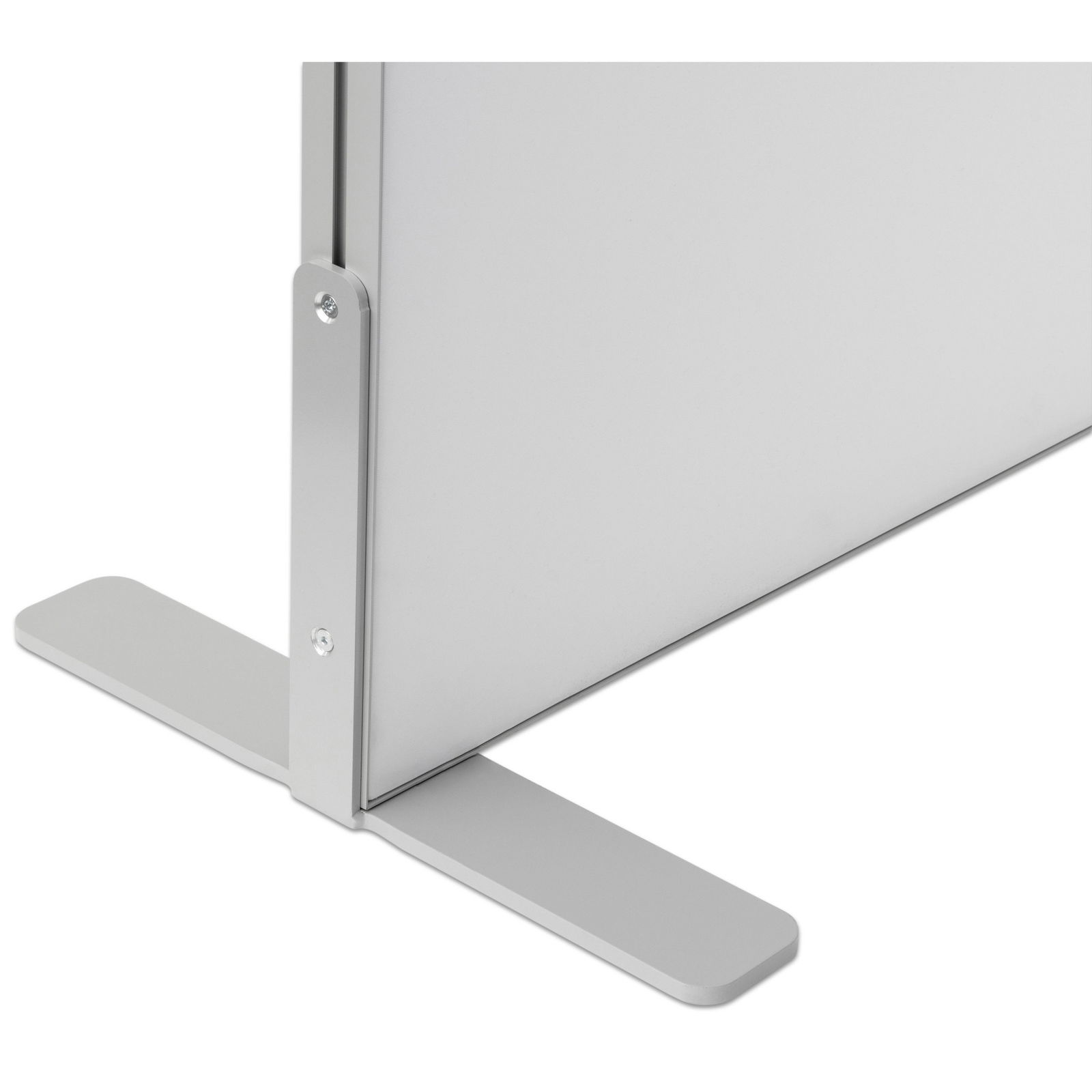 Gerade in stark frequentierten Bereichen wie Fluren, Mensen oder Klassenzimmern ist Standfestigkeit essenziell. Die verstärkten Metall-Standfüße sorgen dafür, dass die Stellwand auch bei unbeabsichtigten Stößen sicher steht. Dies macht sie zur idealen Wahl für Umgebungen, in denen Sicherheit und Robustheit an erster Stelle stehen. - Beidseitiges Design für freie Raumgestaltung