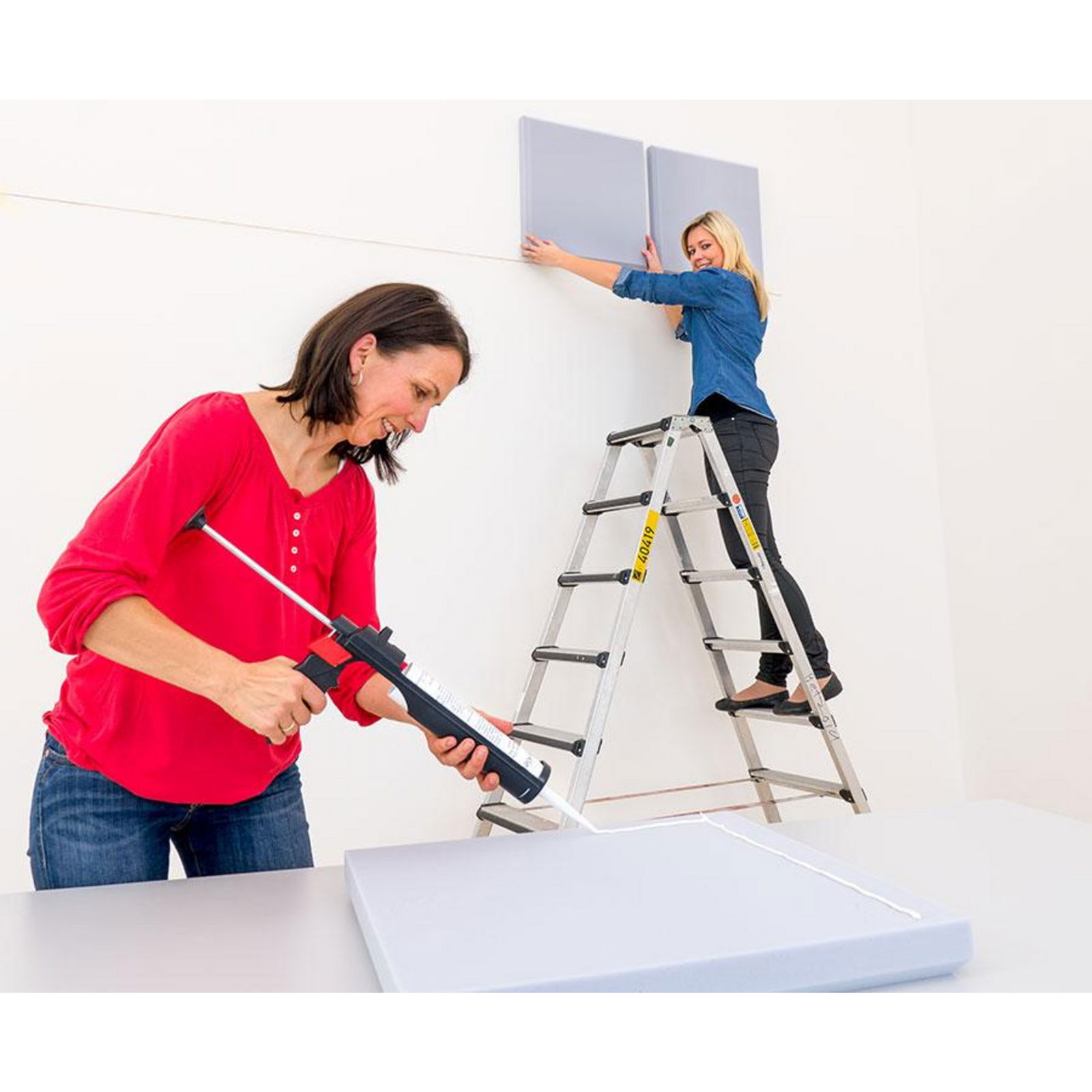 Teure Montagefirmen sind hier überflüssig. Die leichten Elemente lassen sich mittels eines geeigneten Klebers (separat erhältlich) schnell und unkompliziert selbst anbringen. Einfach den Kleber wellenförmig auftragen, das Element an die Wand oder Decke drücken – fertig. Eine Richtschnur hilft dabei, eine exakte Ausrichtung zu gewährleisten. - Sicherheit durch Brandschutzklasse B1
