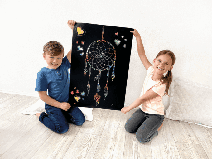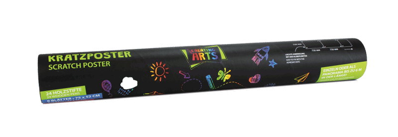 Mit dem XL Kratzposter wird das Gestalten zum kinderleichten Vergnügen! Einfach mit dem Holzstift über die Poster kratzen, und schon entstehen kunterbunte Bilder und aufregende Muster wie durch Zauberhand. Die Poster sind groß genug, um die Kreativität auszulassen – mit einer Größe von 75 x 52 cm bieten sie reichlich Raum für künstlerische Entfaltung. Egal, ob Sie ein Motiv aus der Fantasie erschaffen oder ein wunderschönes Muster kreieren möchten, der Kreativität sind keine Grenzen gesetzt!