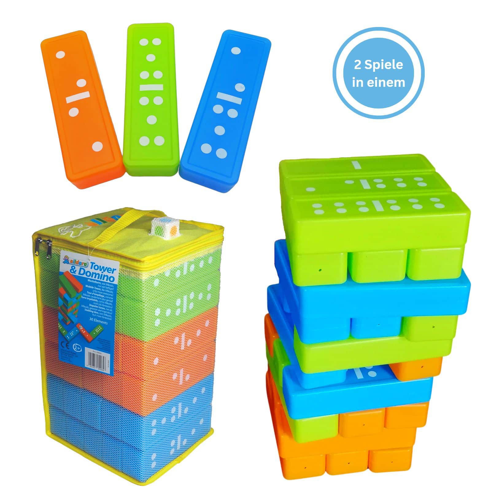Bestellen Sie jetzt das Wackelturm & Domino Set und erleben Sie doppelten Spielspaß für drinnen und draußen!