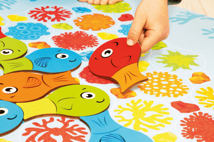 Großes Spielvergnügen mit dem XXL Punakai – das Spiel, das nicht nur Spaß macht, sondern auch die Wahrnehmung schult! Tauchen Sie ein in eine Unterwasserwelt voller Spannung und Farbenpracht mit dem XXL Punakai! Schützen Sie die cleveren Fische, indem Sie sie geschickt im farbigen Korallenriff verbergen. Dieses Spiel fördert die Fähigkeit, Farben zu erkennen und zuzuordnen – und das im spannenden XXL-Format.