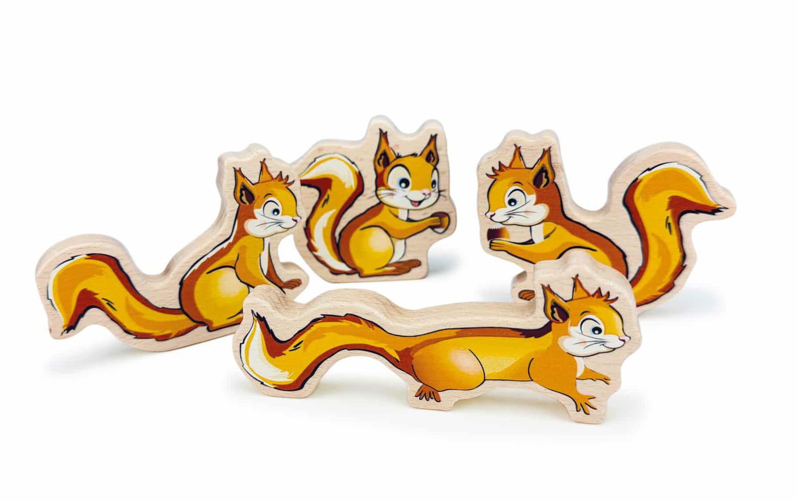 - 4 Eichhörnchen-Spielfiguren aus Holz