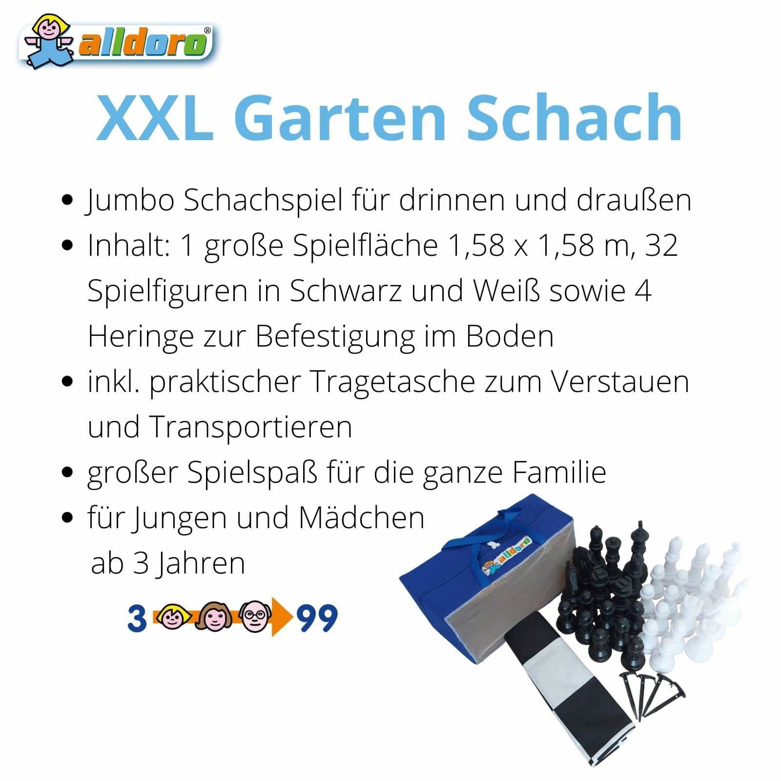 XXL Schach – Extra großer Spielspaß für die ganze Familie: Erleben Sie den Klassiker neu: Unser XXL Schach bringt das beliebte Brettspiel im riesigen Format direkt zu Ihnen nach Hause. Ideal für drinnen und draußen, garantiert dieses Set spannende Schachpartien für alle Altersgruppen.