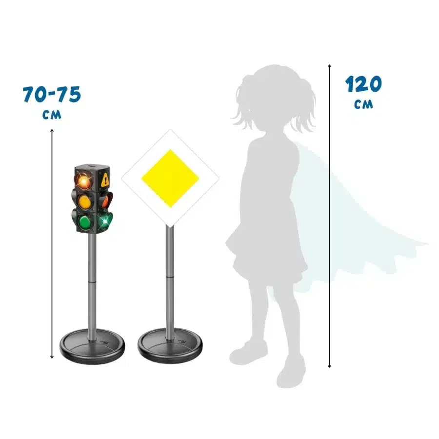 - Robust, wetterfest und extra stabil: Alle Teile des Sets sind aus hochwertigem, witterungsbeständigem Kunststoff gefertigt und somit ideal für den Einsatz im Freien geeignet. Das cleverste Detail: Die schwarzen Standfüße der Schilder und der Ampel können mit Wasser oder Sand befüllt werden. Das sorgt für eine enorme Standfestigkeit, selbst bei Wind oder auf unebenem Boden.