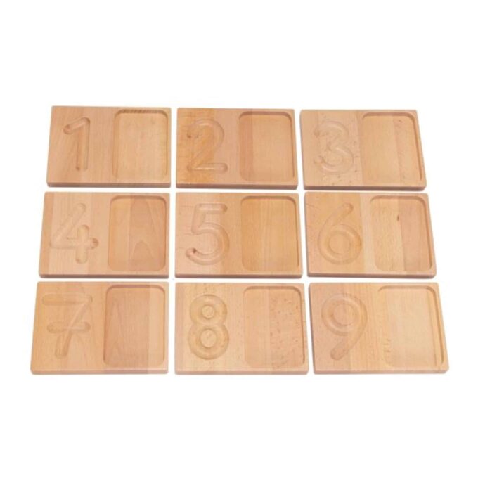 Zahlen entdecken, Mengen begreifen und Feinmotorik spielerisch fördern Die Zahlenfelder zum Nachspuren und Legen sind die ideale Lernhilfe für Kinder, die erste Schritte in die Welt der Zahlen machen. Das hochwertig verarbeitete Set aus massivem Buchenholz besteht aus neun handlichen Zahlenbrettchen mit Vertiefungen, die für ein interaktives und multisensorisches Lernerlebnis sorgen. Kinder können die Form der Zahlen nachspuren und dabei ihre Feinmotorik gezielt trainieren. Ob mit den Fingern, einem Stab oder befüllt mit Materialien wie Sand oder Perlen – die Zahlen lassen sich auf vielfältige Weise entdecken.