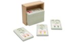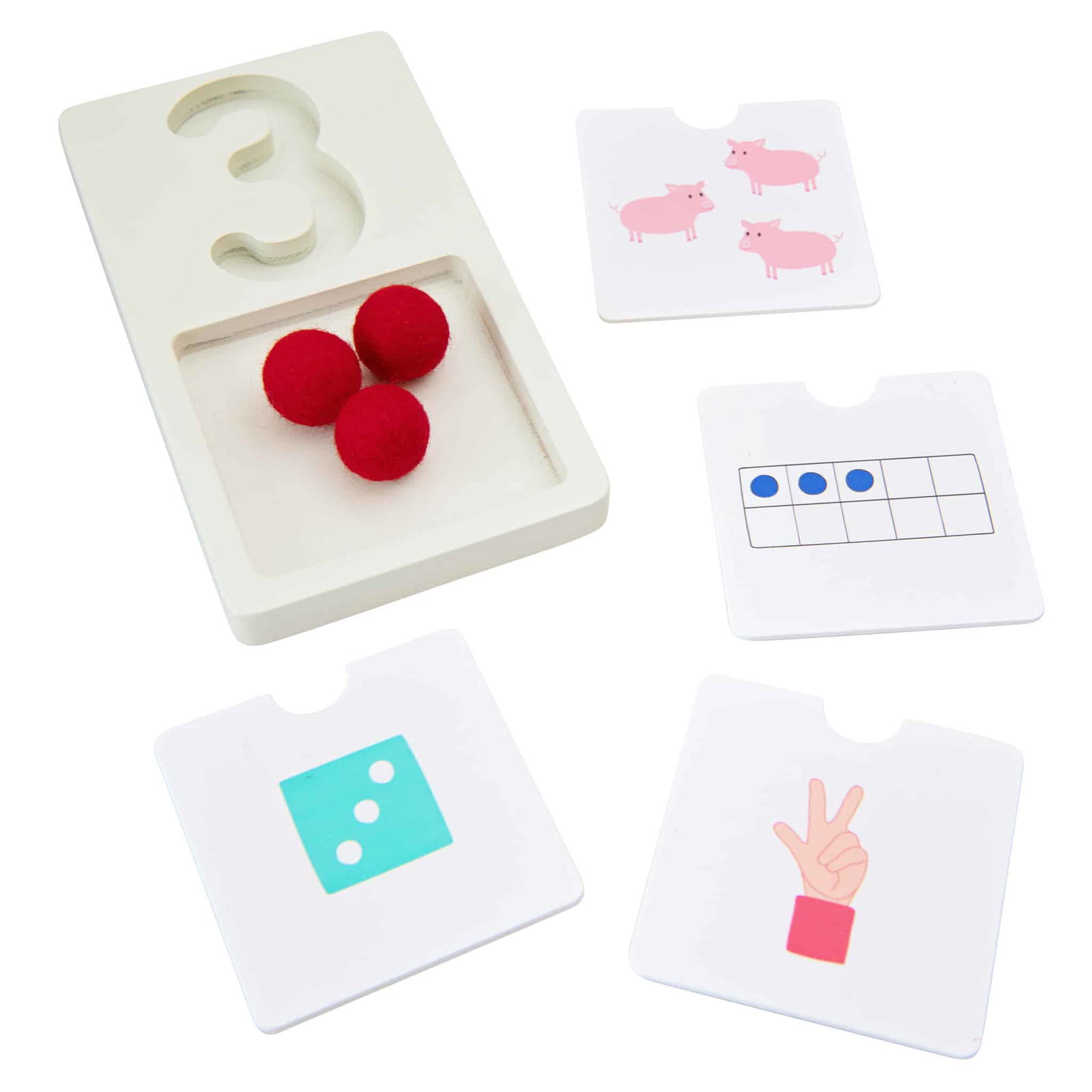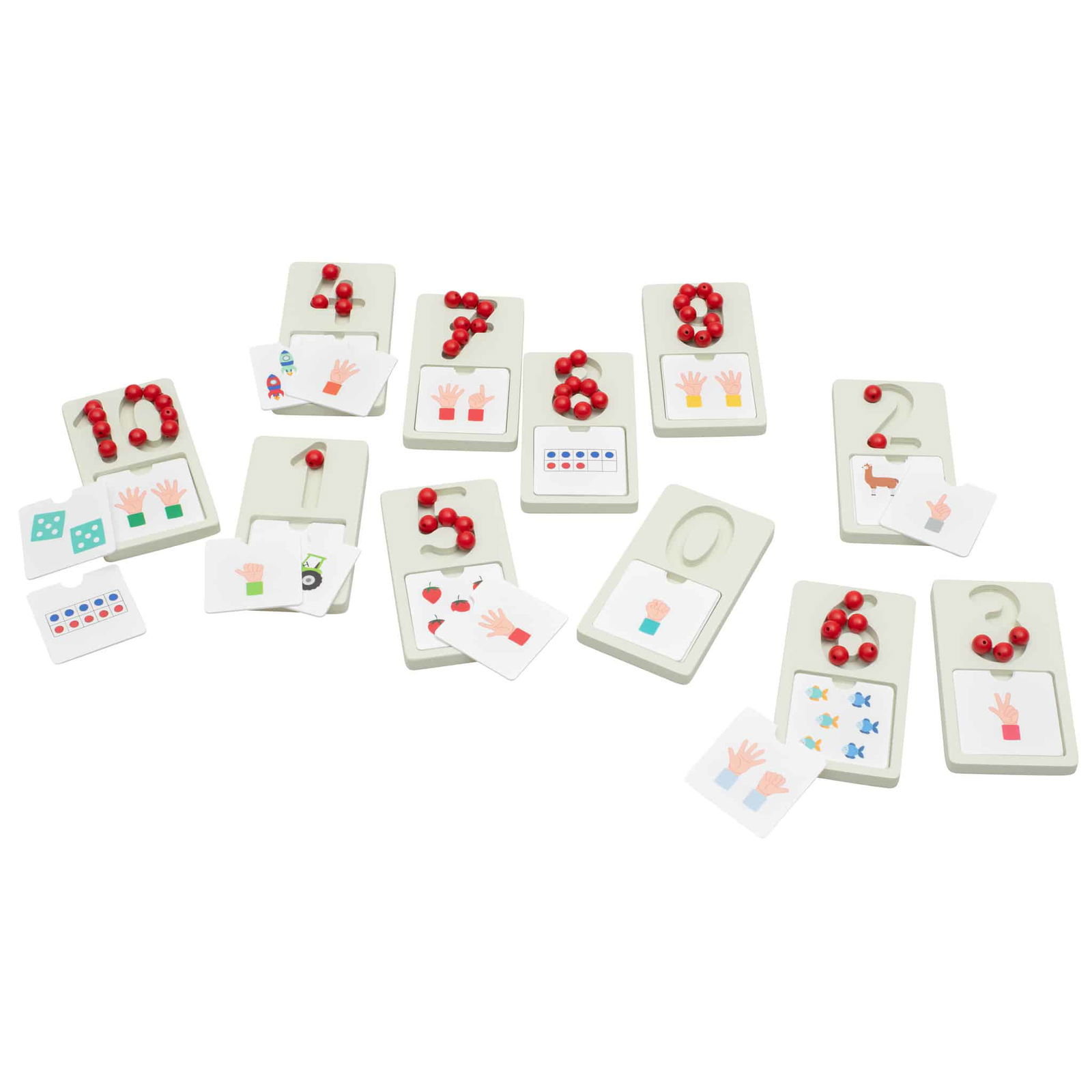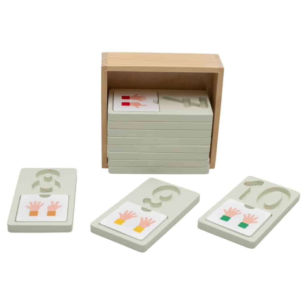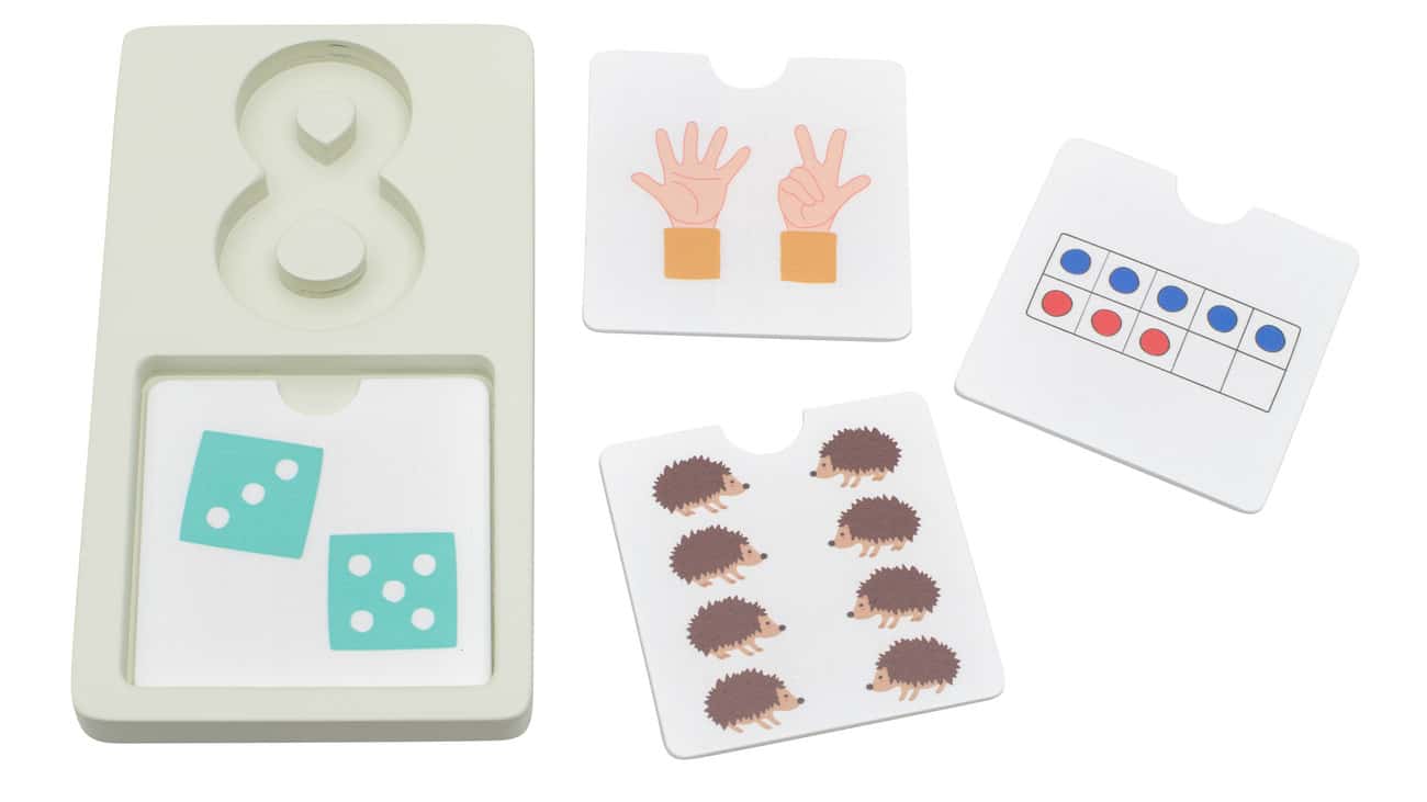 Zusätzlich zu den Zahlenvertiefungen bietet das Erkundungskit 4 separate Holz-Plättchen pro Zahl. Jedes Plättchen zeigt unterschiedliche Darstellungen der jeweiligen Zahl, was sicherstellt, dass Kinder ein umfassendes Verständnis für die Konzepte der Zahlen entwickeln. So lernen sie nicht nur, wie viel eine Zahl wert ist, sondern auch wie sie in unterschiedlichen Kontexten dargestellt werden kann.