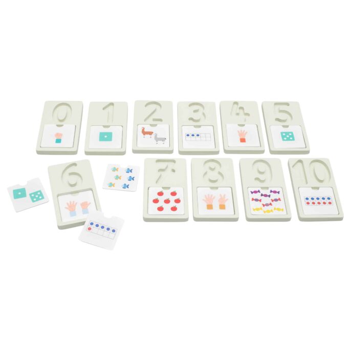 Zusätzlich zu den Zahlenvertiefungen bietet das Erkundungskit 4 separate Holz-Plättchen pro Zahl. Jedes Plättchen zeigt unterschiedliche Darstellungen der jeweiligen Zahl, was sicherstellt, dass Kinder ein umfassendes Verständnis für die Konzepte der Zahlen entwickeln. So lernen sie nicht nur, wie viel eine Zahl wert ist, sondern auch wie sie in unterschiedlichen Kontexten dargestellt werden kann.