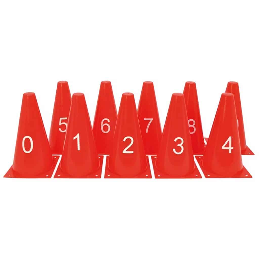 - Klar strukturiert: Die gut lesbaren Zahlen helfen nicht nur beim Rechnen, sondern auch bei der Organisation. Markieren Sie Stationen beim Zirkeltraining (Station 1, Station 2…), legen Sie eine feste Reihenfolge im Parcours fest oder nutzen Sie die Kegel zur Einteilung von Gruppen.