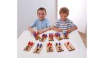 Mit den Zahlenstecktafeln können Ihre Schüler auf einfache und unterhaltsame Weise die Konzepte von Zahlen, Mengen und Rechenoperationen entdecken. Das Set beinhaltet 10 Steckbretter (Maße: je 1,3 x 7 x 12 cm) und 110 Holzstäbchen – jeweils 55 in Rot und Blau. Die Schüler stecken einfach die Holzstäbchen in die Bohrungen der Tafeln. Leere Stellen werden sofort sichtbar, und die Kinder erkennen auf einen Blick, wie viele Stäbchen fehlen, um die jeweilige Zahl zu erreichen.