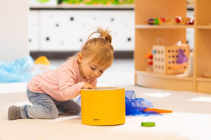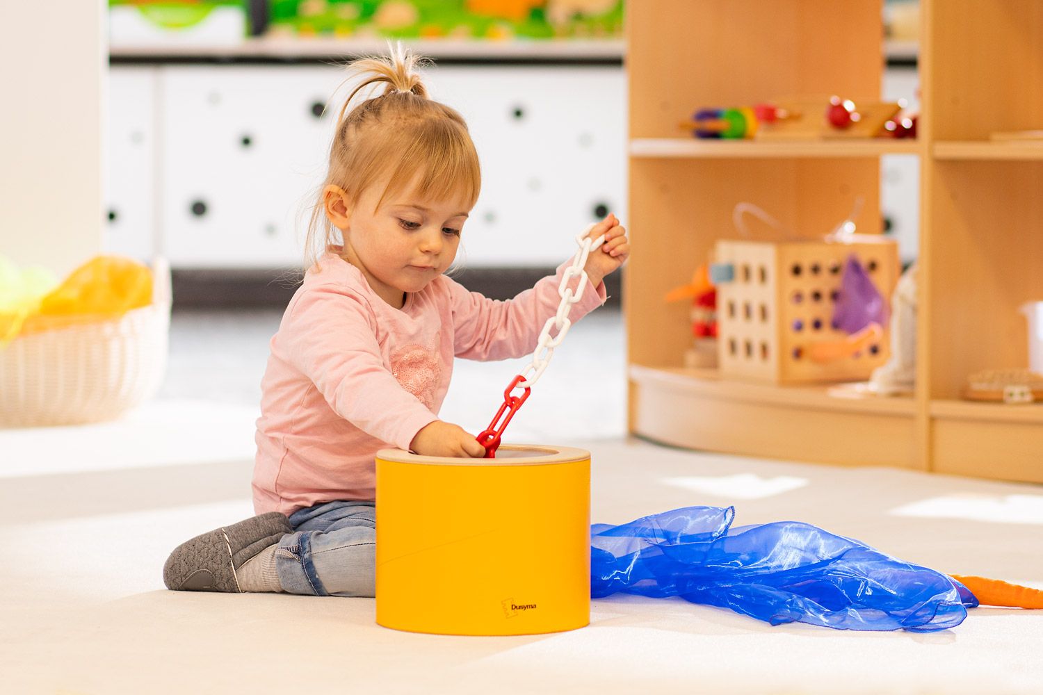 - Feinmotorik: Das gezielte Hineinstecken der Hände in die Dose und das Ertasten von Gegenständen stärkt die Hand-Auge-Koordination und die Beweglichkeit kleiner Finger.