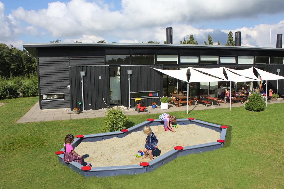Dieser Sandkasten sieht aus wie eine Acht und bietet viel Platz.