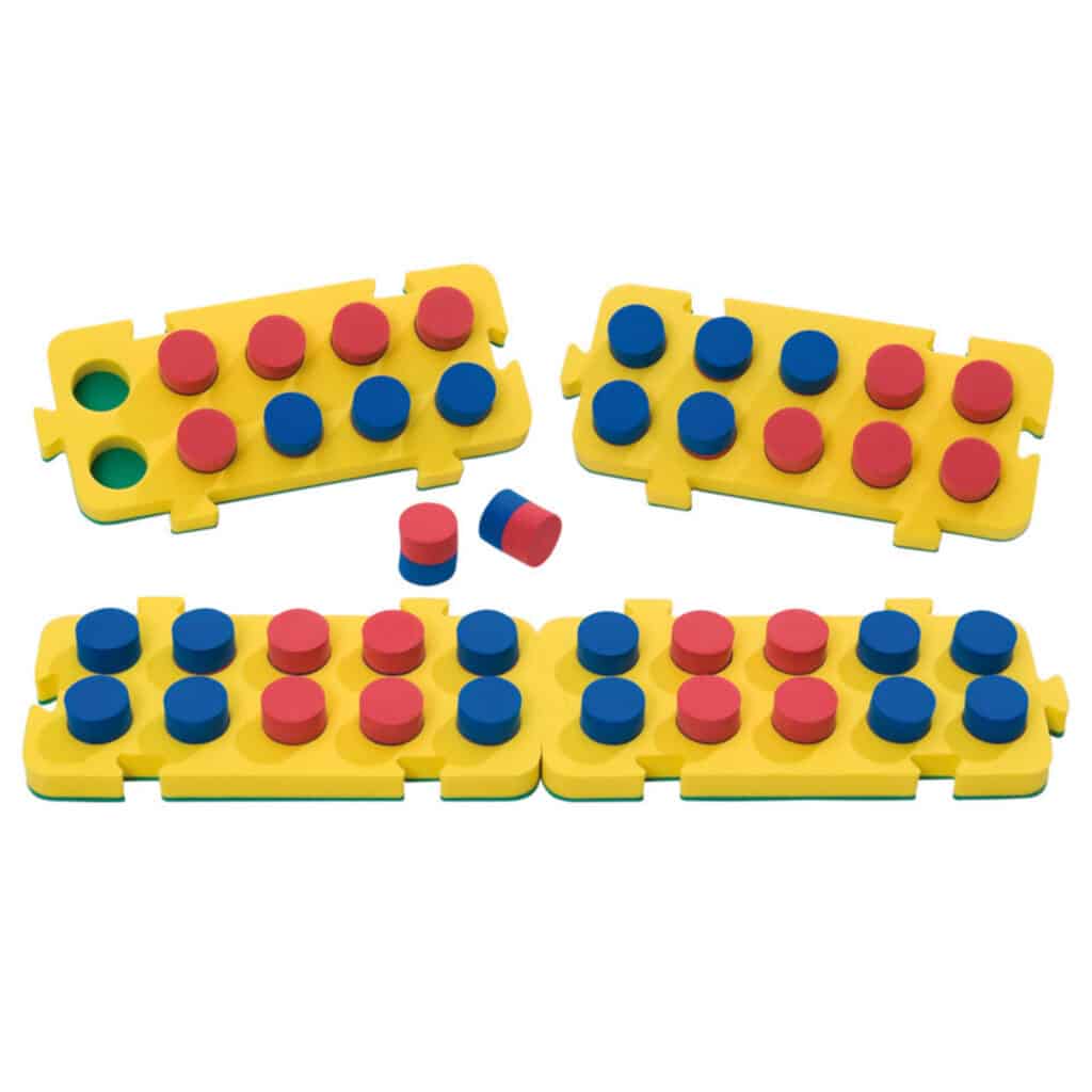 Mit den Zehner-Stöpselplatten können die Kinder ihre mathematischen Fähigkeiten auf vielfältige Weise trainieren: