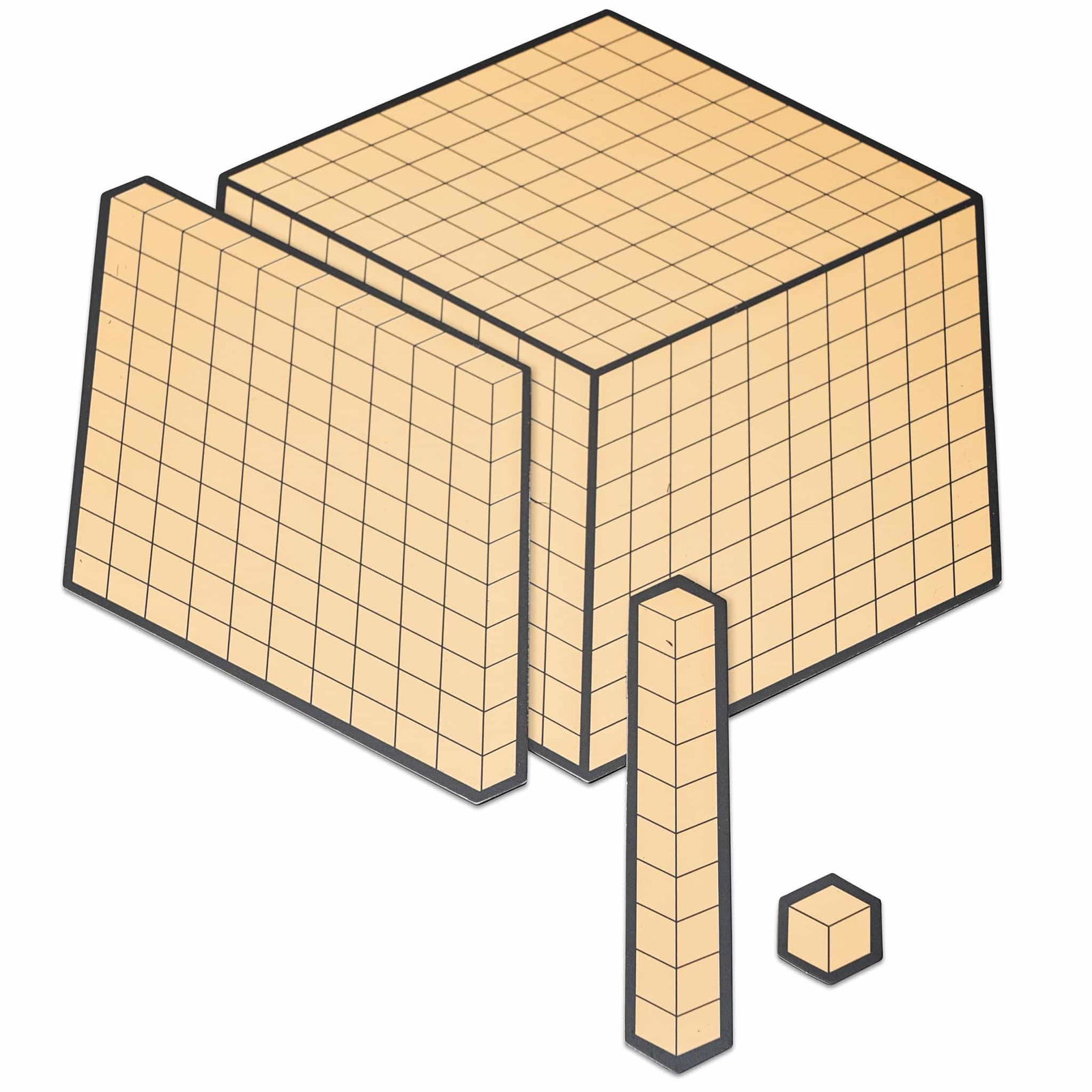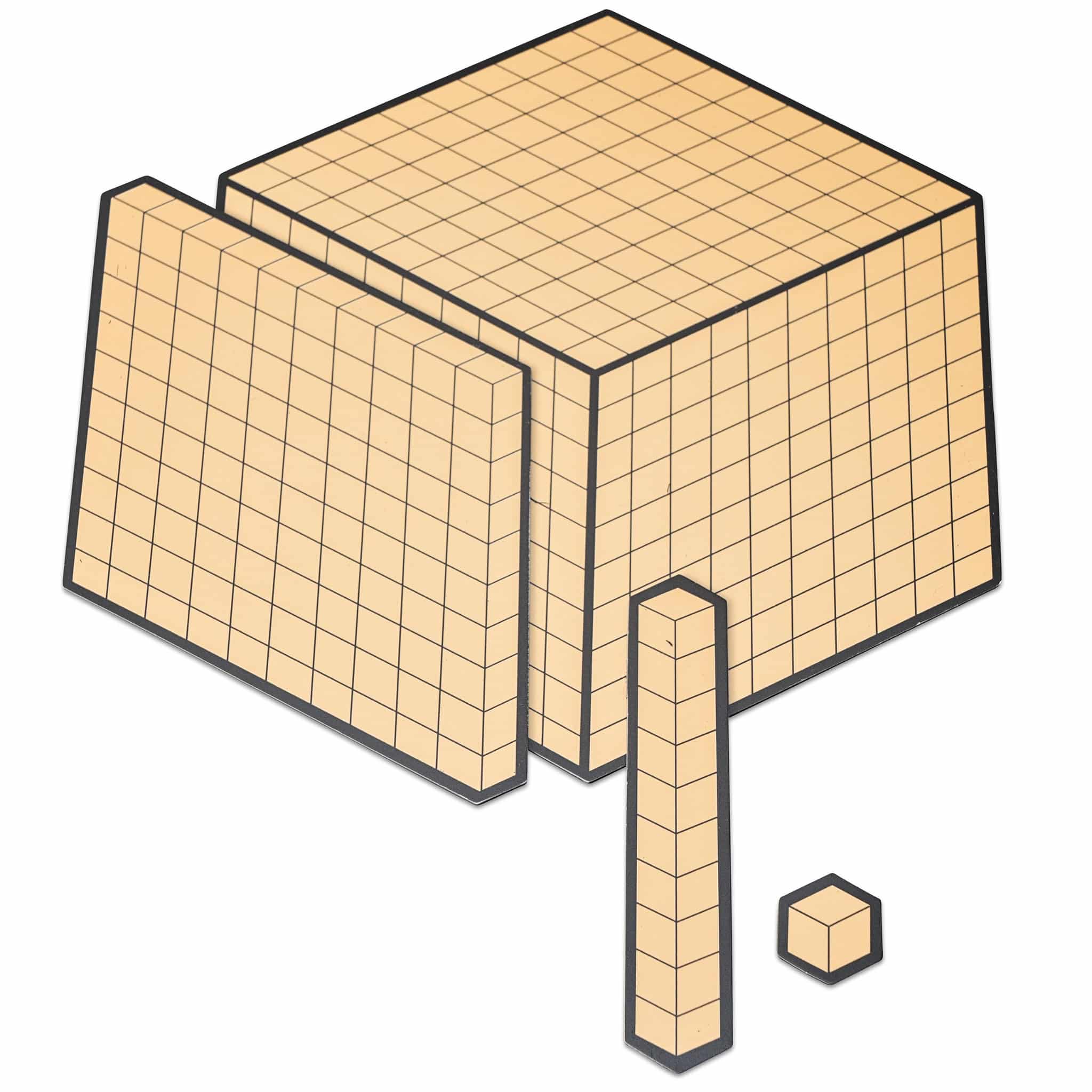 Der Zehnerbasis-Satz ist ideal für den Mathematikunterricht und bietet eine klare, dreidimensionale Darstellung von Zahlen. Die Basisblöcke sind so konzipiert, dass sie das Konzept des Zehnersystems anschaulich vermitteln. Durch das Üben mit den Platten wird der Aufbau des Zehnersystems deutlich, und die Kinder können die Handhabung des Materials direkt erlernen.