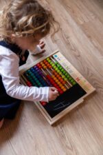 Ein innovativer Abakus, der das Lernen noch spannender macht! Unser doppelseitiges Zählbrett ist ein frühes Rechenwerkzeug, das den Lernprozess noch mehr Spaß macht. Es besteht aus zehn farbenfrohen Holzperlensäulen, die auf vielfältige Weise genutzt werden können – von einfachen Rechenoperationen wie Addition, Subtraktion, Multiplikation und Division bis hin zum Erlernen von Farben. Das Board kann flach liegen oder aufrecht stehen, um alle mathematischen Gleichungen zu lösen. Es verfügt über visuelle Zähl- und Nummernanzeigen auf der Oberseite, so dass Kinder, Eltern und Lehrer das Gelernte aufschreiben, aufzeichnen und nachvollziehen können. Das Abakus hat die Maße 36 x 20 x 2,5 cm und besteht aus FSC-zertifiziertem neuseeländischem Kiefernholz. Es ist für Kinder ab 1 Jahr und älter geeignet und bietet eine solide Grundlage für den frühen mathematischen Lernprozess.
