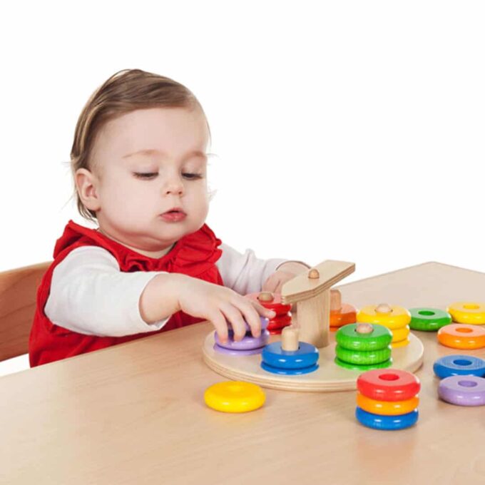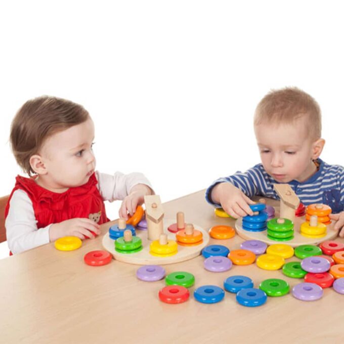 Das „Bunter Zeiger-Spaß“ Steckspiel-Set wurde speziell für die Entwicklung und Förderung der Sensomotorik und Farbzuordnung bei Kleinkindern entworfen und eignet sich hervorragend für den Einsatz in Kinderkrippen. Es ist gedacht für das gemeinsame Spiel von 1 bis 4 Kindern.