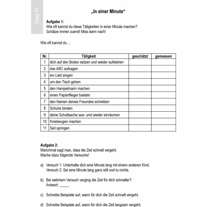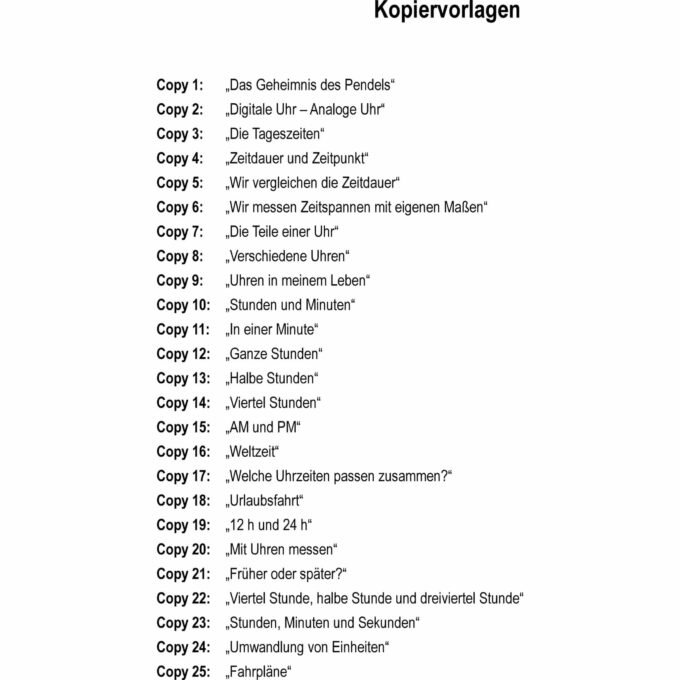 Die Kopiervorlagen decken eine Vielzahl von Themen ab, die sich hervorragend in den Mathematik- und Sachkundeunterricht integrieren lassen. Hier ein Überblick über die enthaltenen Themen: