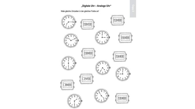 - Analoge und digitale Uhrzeiten: Die Schüler lernen, wie man die Uhr liest und zwischen den Formaten wechselt.