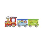 Der blaue Waggon hält spannende Überraschungen bereit: ein kleiner Spiegel, ein Xylophon, das tolle Klänge erzeugt, ein Holzschaber für rhythmische Spiele und eine Achterbahn für Drahtperlen, die zusätzlich zu den kreativen Spielmöglichkeiten anregt. Der grüne Waggon wiederum ermuntert die Kinder dazu, die Welt mit einem kleinen Dampfzug zu bereisen oder mit dem schnellen Zug auf Entdeckungstour zu gehen.