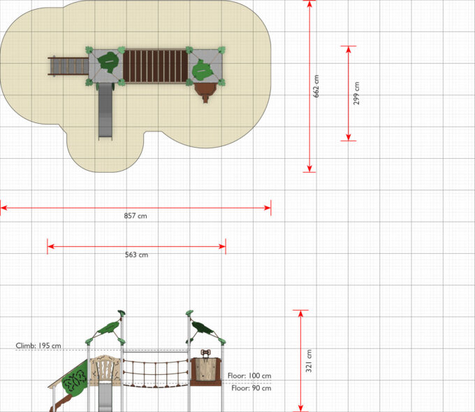 Technische Daten Zwei-Turm-Spielanlage Sikan – inkl. Hängebrücke – LEDON Explore – EX215