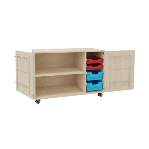 Stellen Sie sich einen Ort vor, an dem jedes Instrument sicher, geordnet und dennoch sofort griffbereit ist. Der zweitürige Musikschrank ist genau das: eine mobile und abschließbare Schatzkiste, die speziell für die dynamischen und hohen Anforderungen des Schul- und Kita-Alltags entwickelt wurde. Er kombiniert die Sicherheit eines robusten Schranks mit der Flexibilität eines Transportwagens und der organisierten Vielfalt eines Regalsystems. Hinter seinen 270° öffnenden Türen verbirgt sich ein durchdachtes Ordnungssystem aus verstellbaren Böden, praktischen Türhalterungen und farbenfrohen Ergo Tray Boxen. So wird die Aufbewahrung von Musikinstrumenten so einfach, sicher und inspirierend wie nie zuvor.