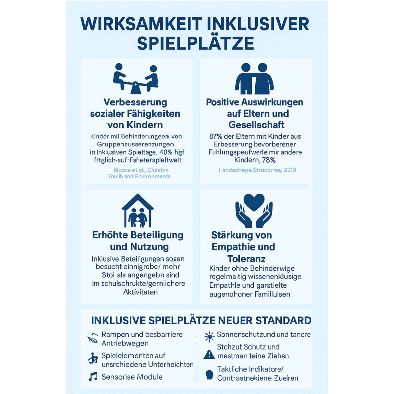Inklusive Spielplätze verbessern die Lebensqualität aller Kinder. Studien zeigen: Sie fördern die soziale Integration und Entwicklung – sowohl für Kinder mit besonderen Bedürfnissen als auch für ihre Altersgenossen.